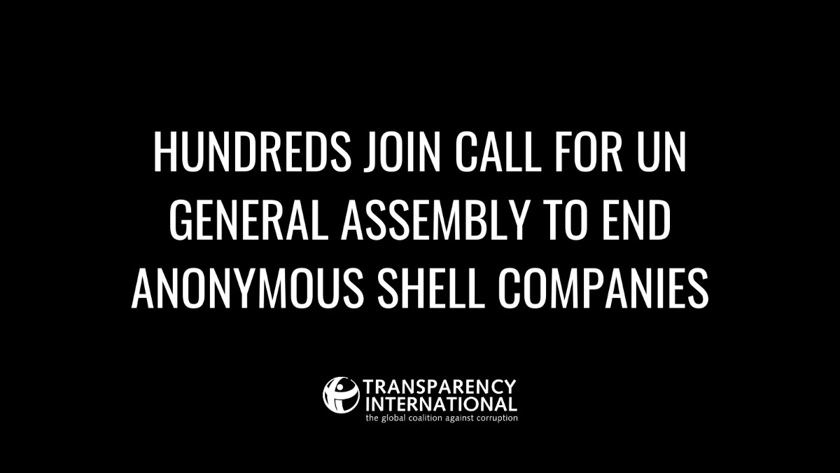 24.02.2021 Транспаренси Интернешнл денес поднесе жалба до Генералното Собрание на Обединетите Нации во име на повеќе од 700 потписници коишто бараат нов глобален стандард за транспарентност за сопственоста на компаниите. Жалбата претходи на сесијата на Специјалната група на Генералното Собрание на Обединетите Нации 2021 којашто треба да се одржи во јуни. Барањето се однесува за сите држави да воведат национални јавни регистри на компаниите откривајќи ги нивните вистински сопственици или оние кои имаат некаков бенефит од нив.