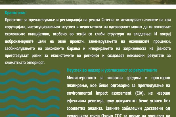 Корупција и лошо управување со животната средина во проектите за пренасочување и реставрација на реката Сатеска