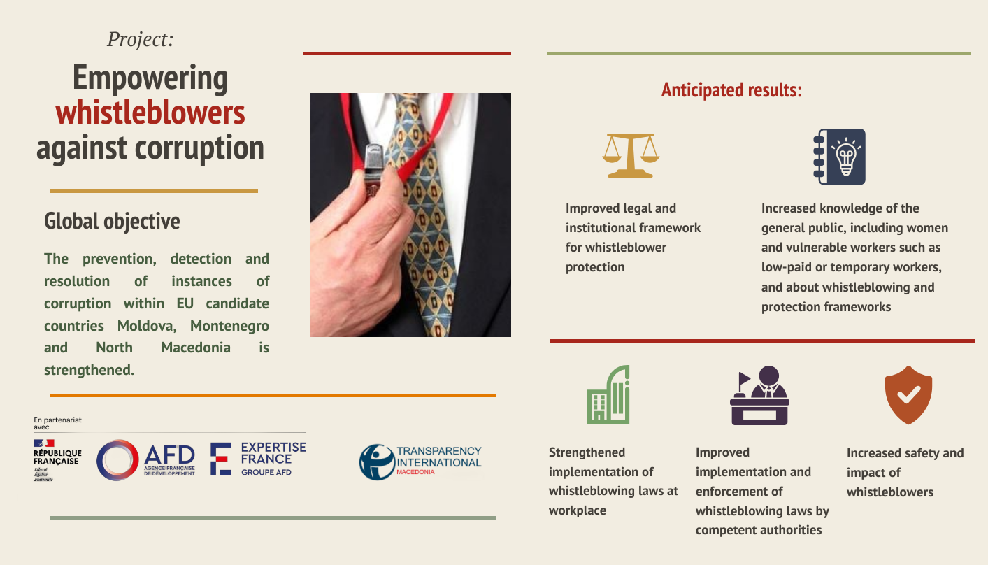 Transparency International Macedonia actively collaborates and is included in numerous networks on a national and international level. TI-Macedonia is a member of the Platform of Civil Society Organizations in the Fight Against Corruption, the Coalition for Protection of Whistleblowers of Southeast Europe (https://see-whistleblowing.org/), and UNCAC (United Nations Convention against Corruption https://uncaccoalition.org/).