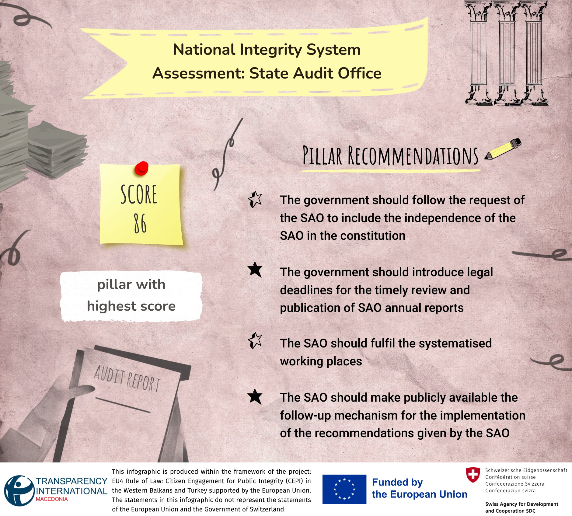 At the beginning of 2024, Transparency International-Macedonia published the report: “National Integrity System of North Macedonia”, which was prepared within the project “EU4 Rule of Law: Citizen Engagement for Public Integrity (CEPI) in the Western Balkans and Turkey”, funded by the European Union and the Government of Switzerland.