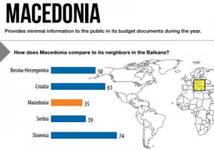 Sipas tyre, Maqedonia gjendet në grupin e shteteve të parafundit (me vlerë të Indeksit 35) të cilat japin informata minimale për procesin dhe dokumentet e buxhetit dhe zë vendin e 68 nga gjithsejtë 100.